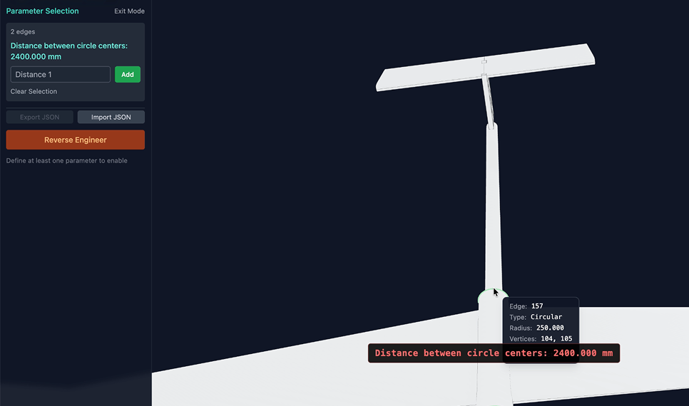 Load your model into Bench and define the parameters that matter. Use edge-to-edge selections to capture functional dimensions, fuselage length, wing chord, hole spacing, whatever drives your design.